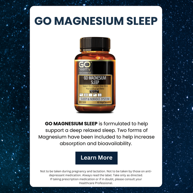 GO MAGNESIUM SLEEP is formulated to help support a deep relaxed sleep. Two forms of Magnesium have been included to help increase absorption and bioavailability. The highly absorbable Magnesium chelate plus natural marine Magnesium, both of which will help relax muscles and ease nervous tension.