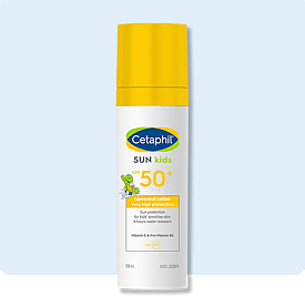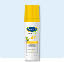 Clothing is the first line of defense against skin cancer, and dressing babies in lightweight clothing that covers their arms and legs is a great first sun protection step. Then add on a wide-brimmed hat that covers the baby’s face, neck and ears — putting a child in a hat during their first few months will help them get used to having one on. (Bonus: they’ll look super cute!) When you’re on the move, use a stroller with a sun-protective cover and do your best to schedule walks before 10 AM and after 4 PM, avoiding strong midday sun. While traveling in the car, try a removable mesh window shield to block sunlight from reaching your little one. Yes, some damaging rays penetrate glass.