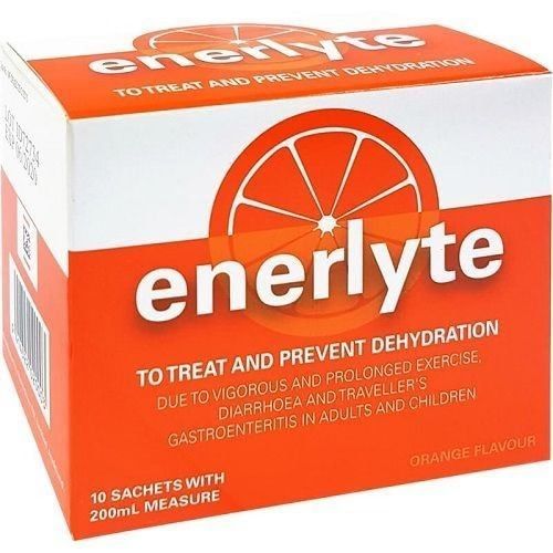 Enerlyte is an oral electrolyte solution designed to prevent dehydration due to vigorous and prolonged exercise, diarrhoea and travellers gastroenteritis in adults and children.